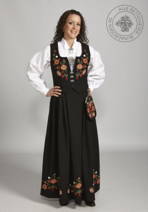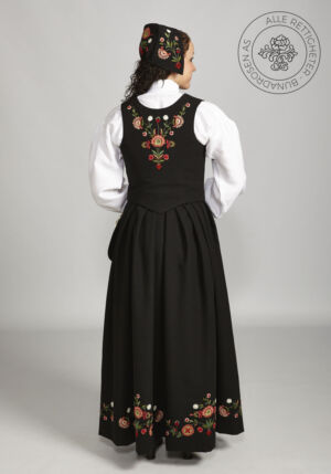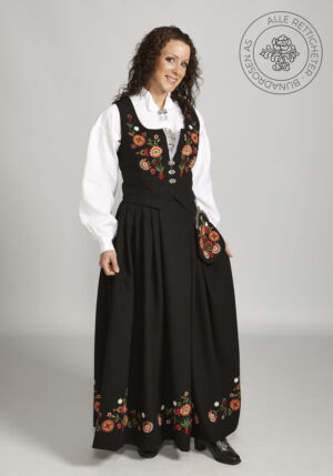 Det brukes underskjørt med påsydde kapper i farge som matcher bunaden.