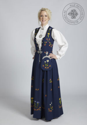 Festdrakten lages i sort eller blått ullstoff, og er vakkert håndbrodert på både stakk, liv, veske og belte med staudeblomster som vokser i hele landet; Fjellsmelle, Reinrose, Fjellveronica og Griseblad. Som skjorte kan man bruke en bomullskjorte med nuperelle på krage og mansjetter, eller skjorte med ståkrage. Siden dette er en festdrakt står man fritt til å benytte det sølvet man selv ønsker, men det er laget et eget sølv til Benedicte som kan kjøpes hos BunadRosen. Hovedblomsten i både drakt og sølv er Fjellsmelle.