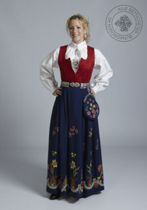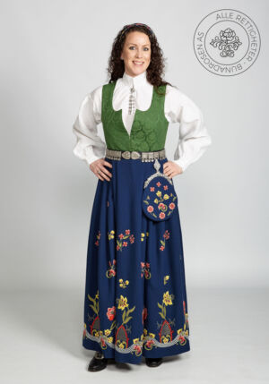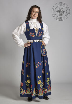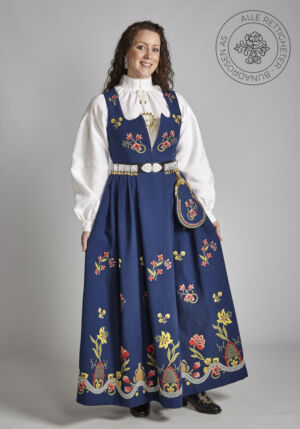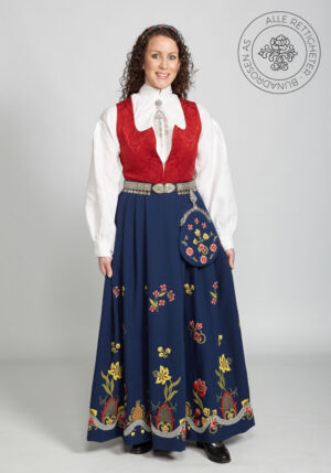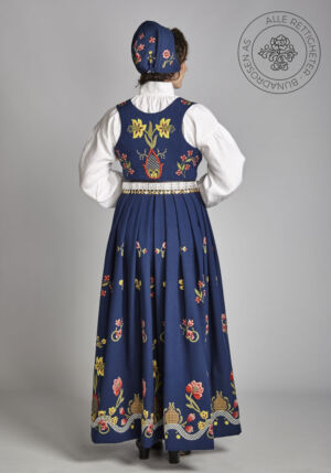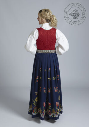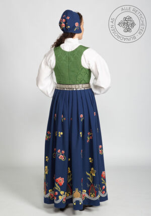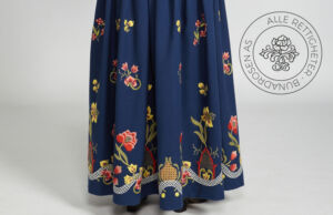 Det brukes underskjørt med påsydde kapper i farger som matcher bunaden.