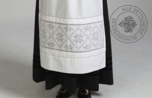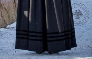Stakken er i sort ullstoff, og den kan være foldelagt, piperynket eller plissért. Nederst er det sydd på 3 smale fløyelsbånd. Stakken er sydd fast til livet.