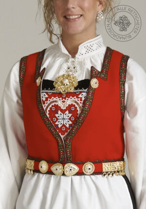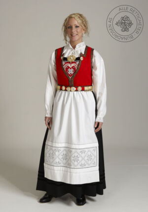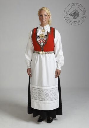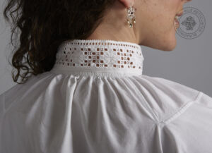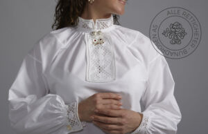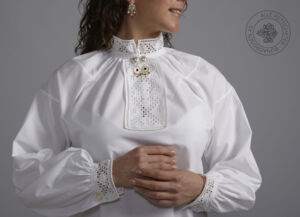 Skjorten er i hvit lin eller bomull med broderi på krage, mansjetter og bringelist, og det finnes mange forskjellige mønster. Den lukkes med en sølje og mansjettknapper i sølv.