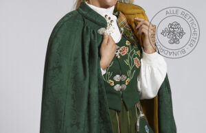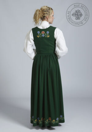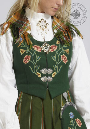 Det kan brukes underskjørt med påsydde kapper i farge som matcher bunaden.