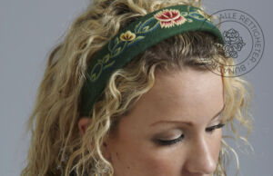 BunadRosen lager håndbroderte hårbøyler og hårbånd i blå eller grønn klede som kan kjøpes separat.