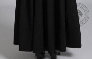 Stakken er i sort eller blått toskafts ullstoff som er piperynket bak med glatt parti foran, og er sydd fast til livet med en linning.
