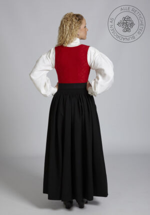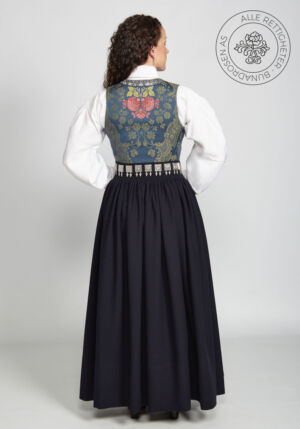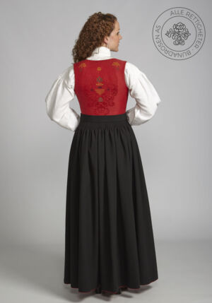 Det brukes underskjørt med påsydde kapper i farge som matcher bunaden.