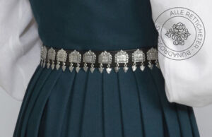 Belte med broderi midt bak, i samme stoff og farge som stakken. Velger man å ha brodert ryggrose, skal beltet være uten broderi. Det lukkes med en beltespenne i sølv. Det kan også brukes sølvbelte til bunaden, sølvet monteres da på et stoff- eller skinnbelte.