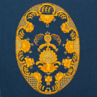 Stakken er foldelagt i blå, sjøgrønn eller rød toskafts ullstoff. Opprinnelig var det ikke broderi på stakken, men etterhvert fikk den en sammenhengende, brodert bord nederst. Broderiene er i tre gulfarger og én rødfarge, bortsett fra til rød bunad hvor det kun benyttes gult garn.
