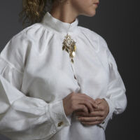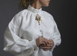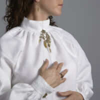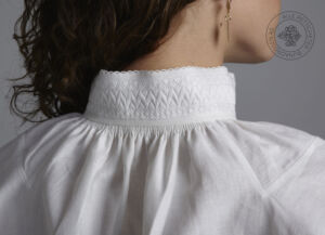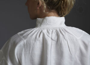 Det finnes to forskjellige linskjorter, begge med broderi på krage og mansjetter. Den ene har ranker og stiliserte blomster brodert med kjedesting, attersting og grunnsøm. Dette skjortebroderiet kalles «Roser og knuter». Den andre skjorten har sikksakk-mønster brodert med plattsøm og kontursting. Begge skjortene lukkes med en halssølje og mansjettknapper i oksidert eller forgylt sølv. Det brukes samme skjorter til alle Romeriksbunadene.