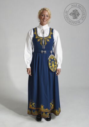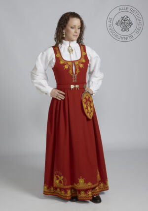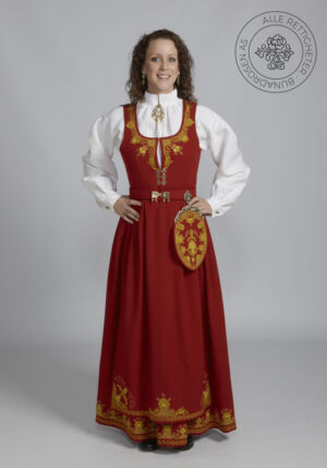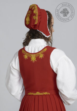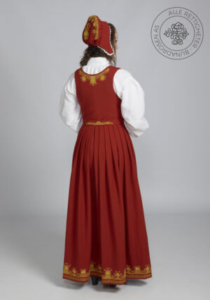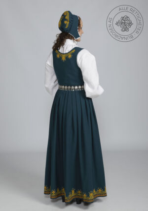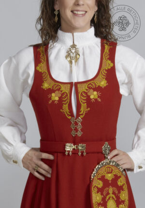 Det brukes underskjørt med påsydde kapper i farge som matcher bunaden.
