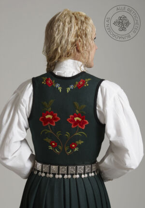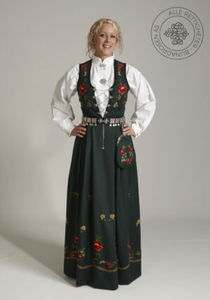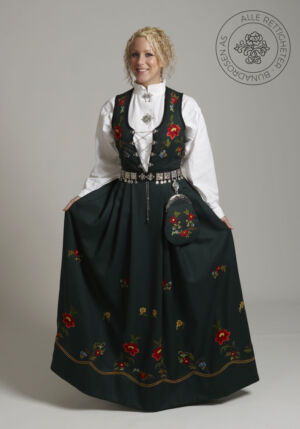 Silje Festdrakt er et fint alternativ til de som ikke ønsker seg en stedsbundet bunad, men som likevel vil ha en bunadsinspirert drakt. Festdrakten er designet av Dagny Louise Bertelsen, og kom i produksjon i 1997.