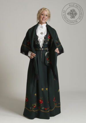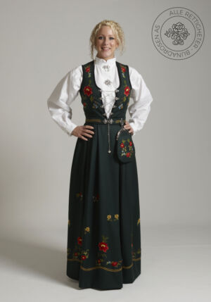 Prisen inkluderer drakt med veske, belte, lue og pannebånd. Skjorte, sølv, sko og ytterplagg kommer i tillegg.