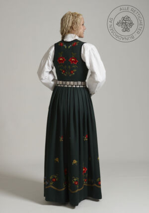 Den lages i blått, grønt eller sort ullstoff, og er vakkert håndbrodert med stiliserte blomstermotiv på både stakk, liv, veske, belte, lue og pannebånd. Som skjorte kan man bruke en bomullskjorte med nuperelle på krage og mansjetter, eller skjorte med ståkrage. Siden dette er en festdrakt står man fritt til å benytte det sølvet man selv ønsker, men det er laget et eget sølv til Silje med utgangspunkt i broderiene fra drakten, som kan kjøpes hos BunadRosen.