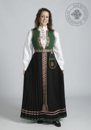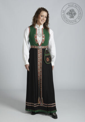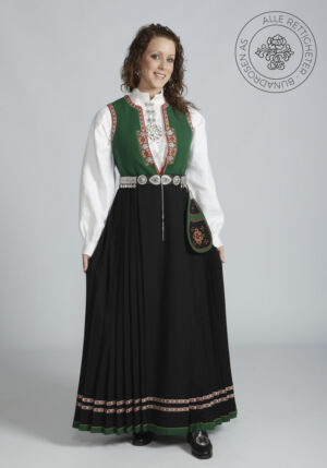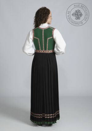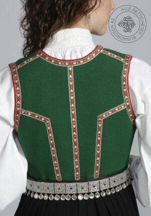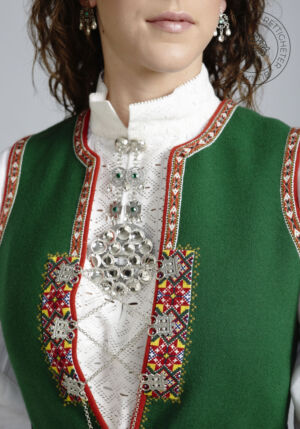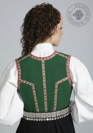 Livet sys i grønt ullstoff, og er dekorert med korsstingsbroderte maljeduker foran på livet. Rundt ermeringningene og ned til maljedukene er det vevde bånd. Livet lukkes med sølvmaljer og et sølvkjede.