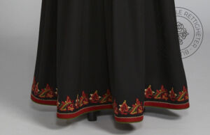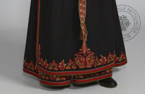 Det brukes underskjørt med påsydde kapper i farger som matcher bunaden.