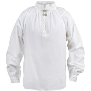 Skjorten er i hvit bomull eller lin med hvitsømsbroderier på krage og mansjetter. Alternativt kan det brukes en enkel bomullskjorte uten broderi. Skjorten lukkes med en halsknapp og mansjettknapper i sølv.