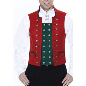 Vesten sys i rød klede med ståkrage og et grønt, innfelt forstykke for å gi en illusjon av 2 vester. På vesten til Indre Hordaland er det gule og grønne stikninger på kragen. Langs fremkanten av kragen og langs halsskjæringen på den røde delen av vesten er det grønne kanter. Vesten til Ytre-Nordhordland har en tettere halsskjæring, og den røde delen er kantet med grønt, mens den grønne delen er kantet med rødt. Begge vestene er dobbeltspent med 32 eller 34 små sølvknapper avhengig av modell.
