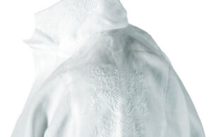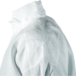 Skjorten er i hvit lin med hvitt broderi på krage, skulderstykker og mansjetter. Alternativt kan man bruke en bomullskjorte uten broderi. Skjorten lukkes med en halsknapp og mansjettknapper i sølv.