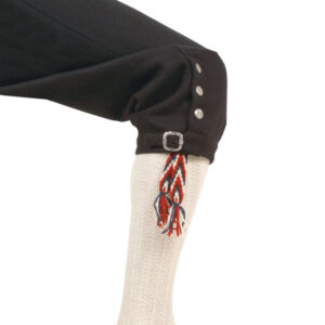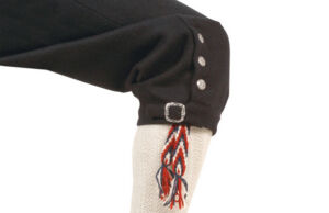 Nikkersen er i mørkeblå klede med en klaff foran, og knesplitt med linning ved hvert kne. Den trenger 4 store og 6 små sølvknapper, og knespenner i sølv.