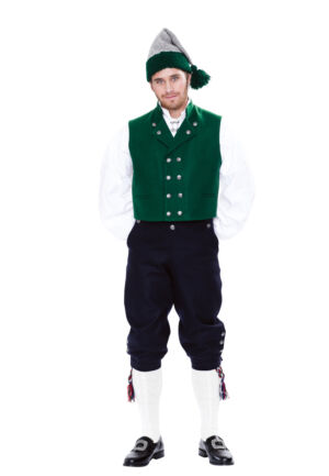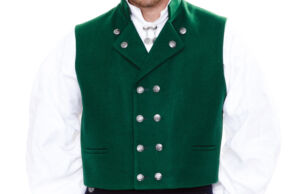 Vesten sys enten i grønn klede eller et rutet ullstoff som har grønn bunnfarge med røde og sorte striper som danner et rutemønster. Begge vestene har nedbrettede slag, og den grønne har ståkrage, mens den rutete er uten krage. Vestene er dobbeltspent og lukkes med 12 små sølvknapper.