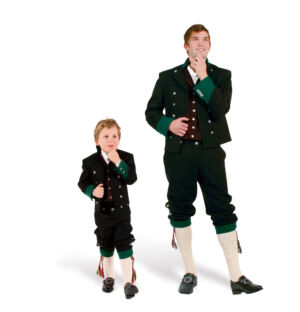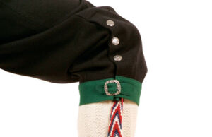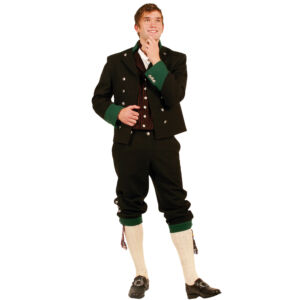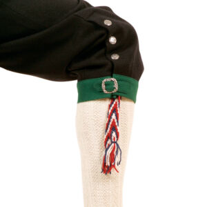 Nikkersen er i sort klede med en klaff foran som lukkes med 6 store sølvknapper, og knesplitt med grønn linning ved hvert kne som lukkes med 6 små sølvknapper og knespenner i sølv.