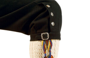 Det er valgfritt om man ønsker nikkers eller lang bukse, begge variantene sys i sort klede. Man kan også velge om buksen skal være med gylf eller klaff. Nikkersen lukkes med 6 eller 10 store sølvknapper og knespenner i sølv, mens langbuksen med klaff lukkes med 4 store sølvknapper.