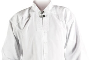 Skjorten er i hvit bomull eller lin med broderier på krage, mansjetter og på hver side av halssplitten. Alternativt kan det brukes en enkel bomullskjorte uten broderi. Skjorten lukkes med en halsknapp og mansjettknapper i sølv.